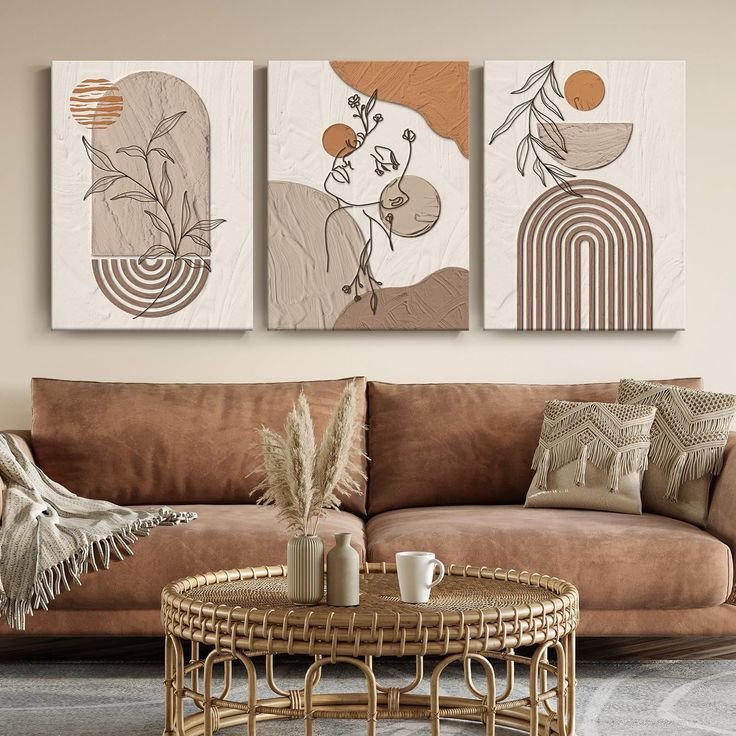 A handcrafted frame adding warmth and sophistication to a modern living room, where art meets comfort effortlessly.