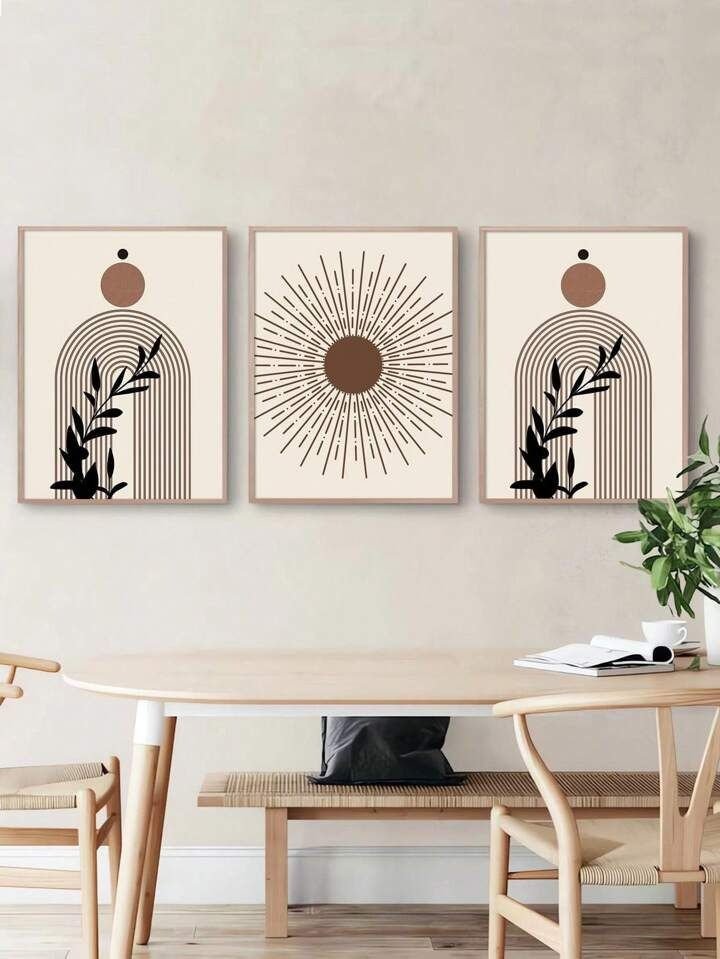The focused light makes the framed artwork’s textures and shapes stand out. This display gives the room a sophisticated, elegant, and balanced focal point.
